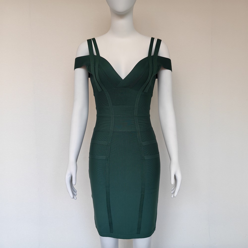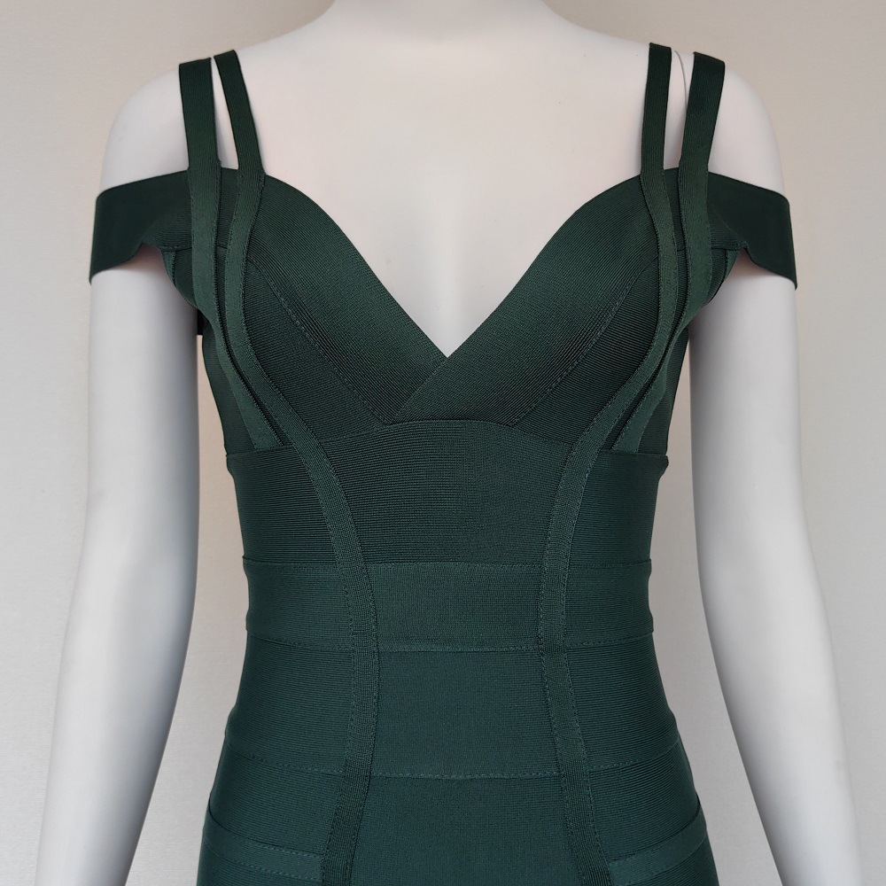 Elegant Design: V-neck and sleeveless bandage dress with a high waist, perfect for banquets and evening events.