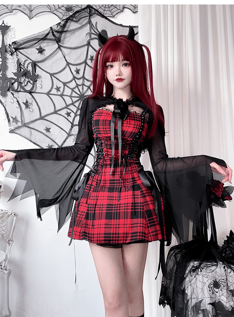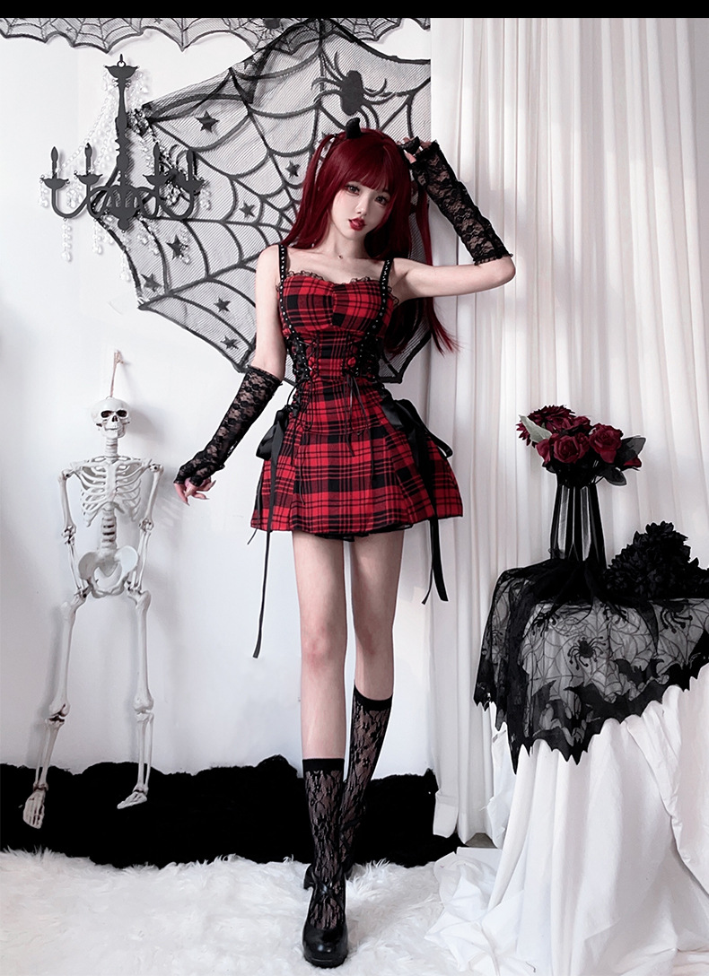 Make a statement with this Gothic-inspired dress, featuring delicate lace details and a dark, edgy aesthetic perfect for bold fashion lovers. The Y2K plaid patterns add a sweet yet cool twist, blending retro vibes with modern street style.