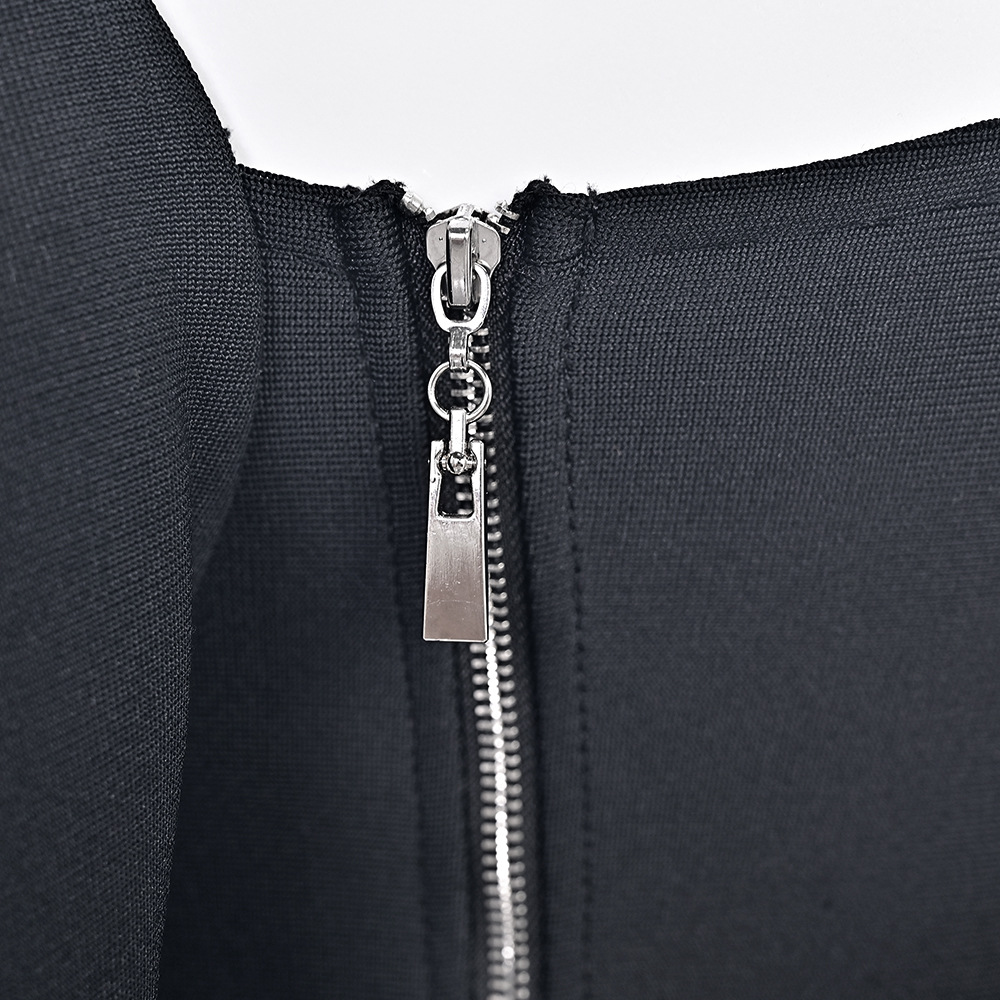 Crafted from a stretchy polyester–spandex blend, this dress offers a smooth, body-hugging fit that moves with you. The sleek side slit and bandage-style accents elevate the look with subtle sophistication, and the hidden zipper closure ensures effortless wear.
