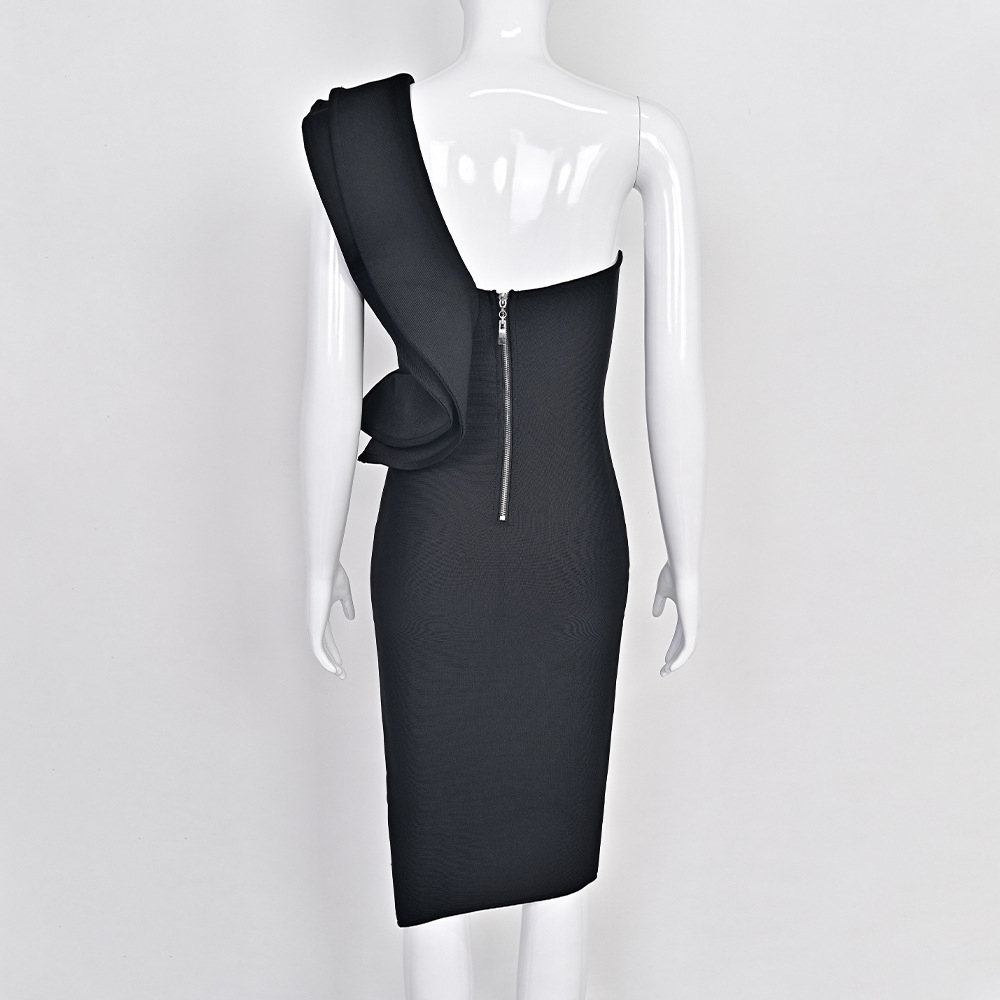Step into timeless style with this vintage-inspired one-shoulder dress, designed to turn heads from formal events to your weekday commute. The ruffled lotus-leaf sleeve adds a touch of romantic flair, while the high-waisted, mid-length silhouette creates a flattering shape that enhances every curve.