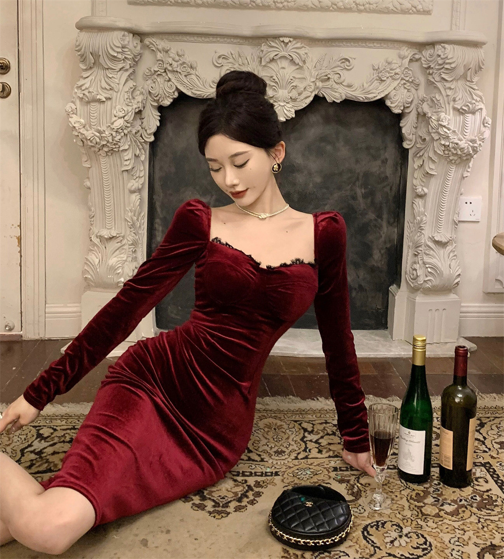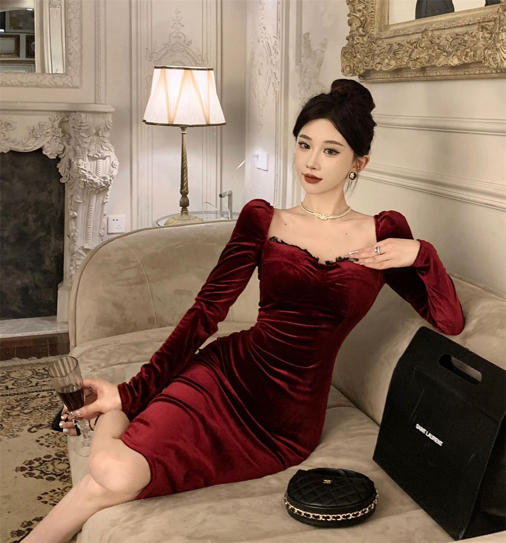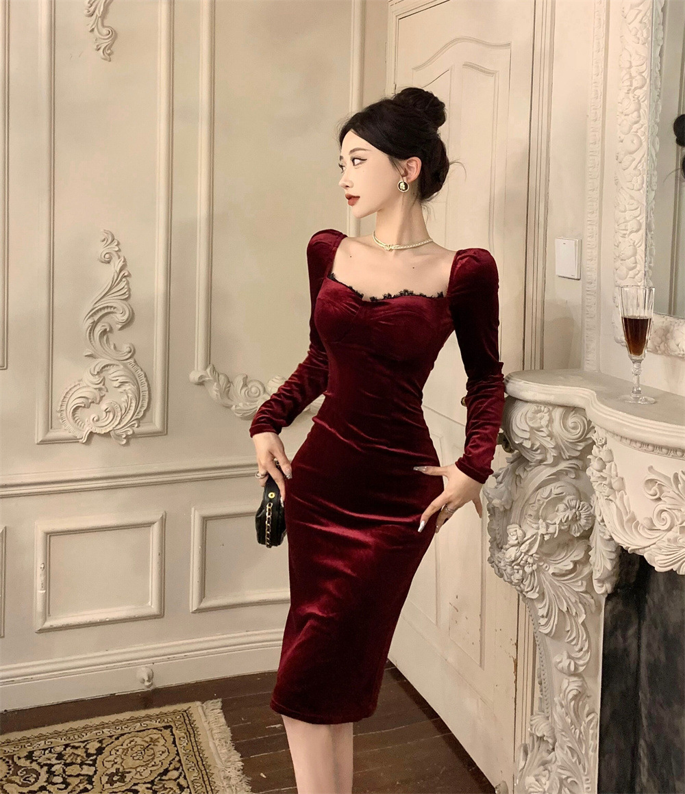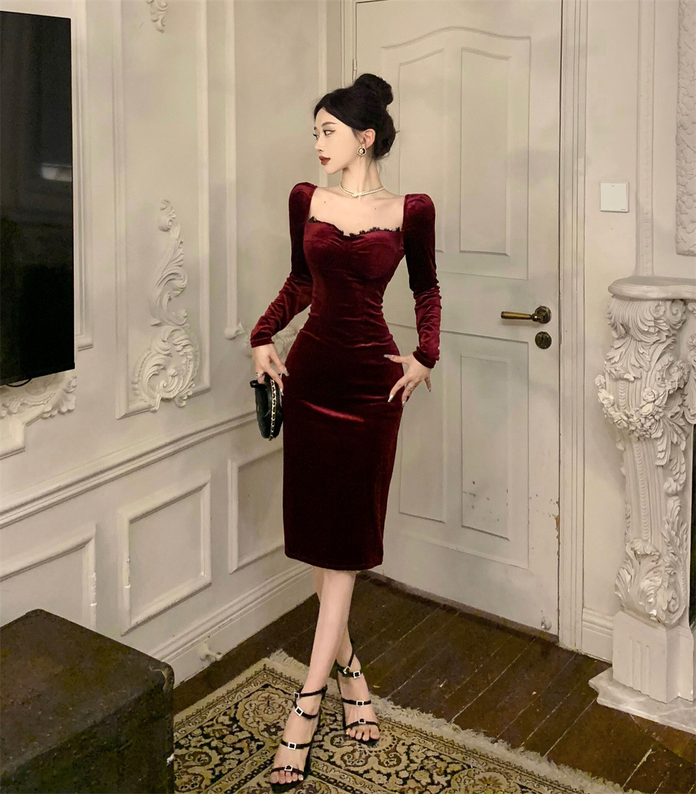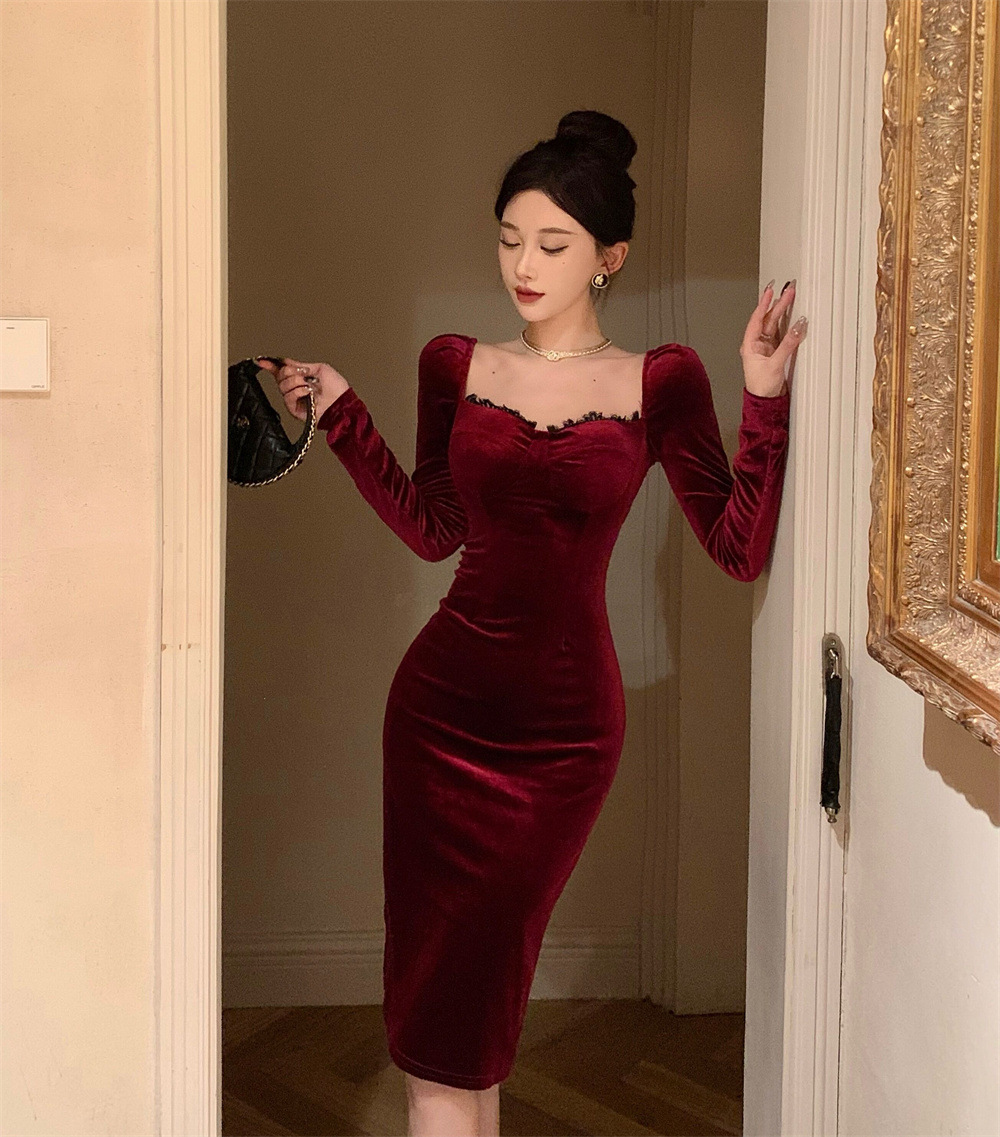 Step into timeless style with this vintage-inspired velvet dress, crafted from soft, highly elastic velvet for comfort and flexibility. The square neckline adds a touch of retro elegance, while the high-waist, body-hugging silhouette creates a flattering, slimming fit.