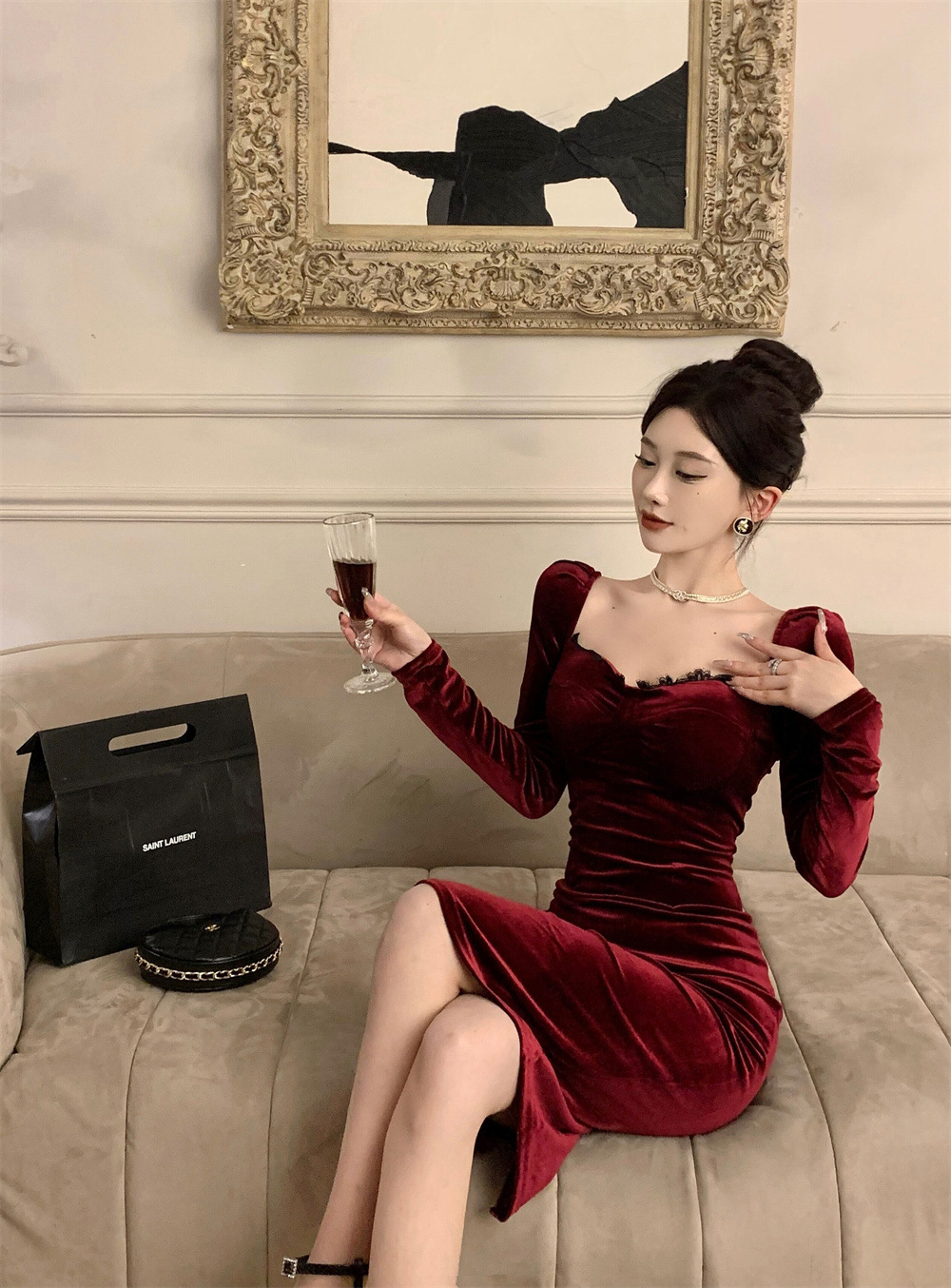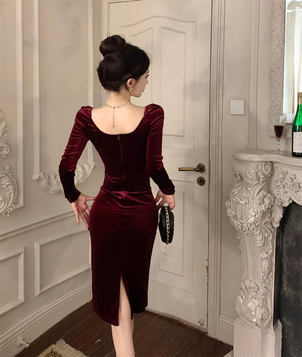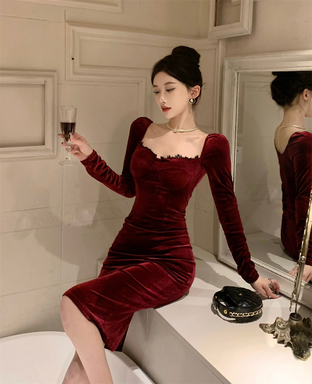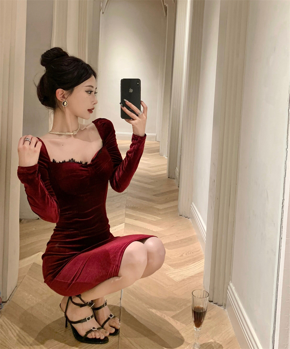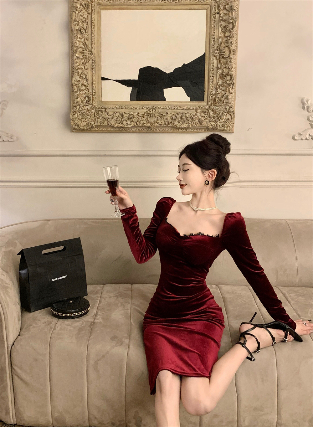 Step into timeless style with this vintage-inspired velvet dress, crafted from soft, highly elastic velvet for comfort and flexibility. The square neckline adds a touch of retro elegance, while the high-waist, body-hugging silhouette creates a flattering, slimming fit.