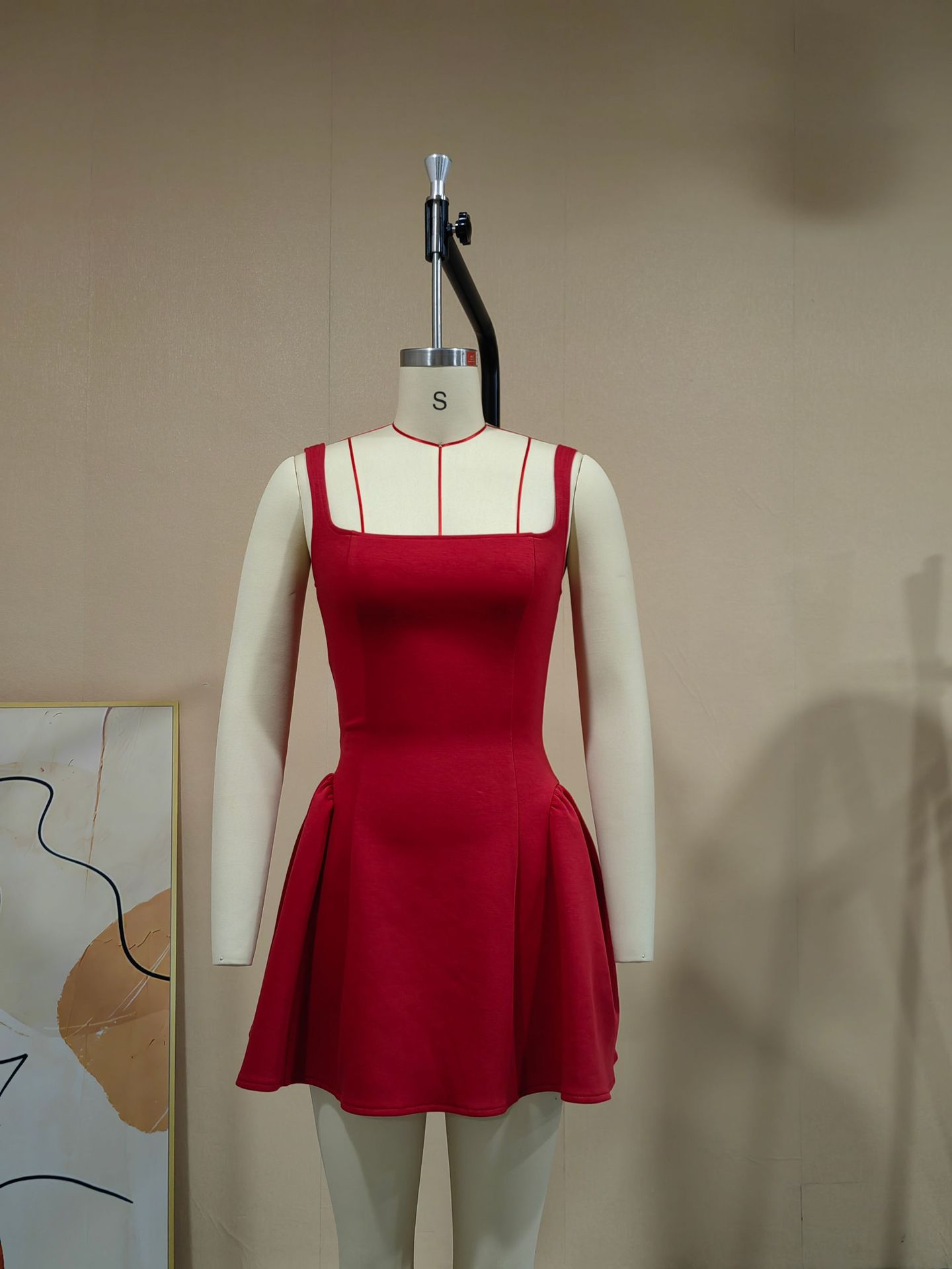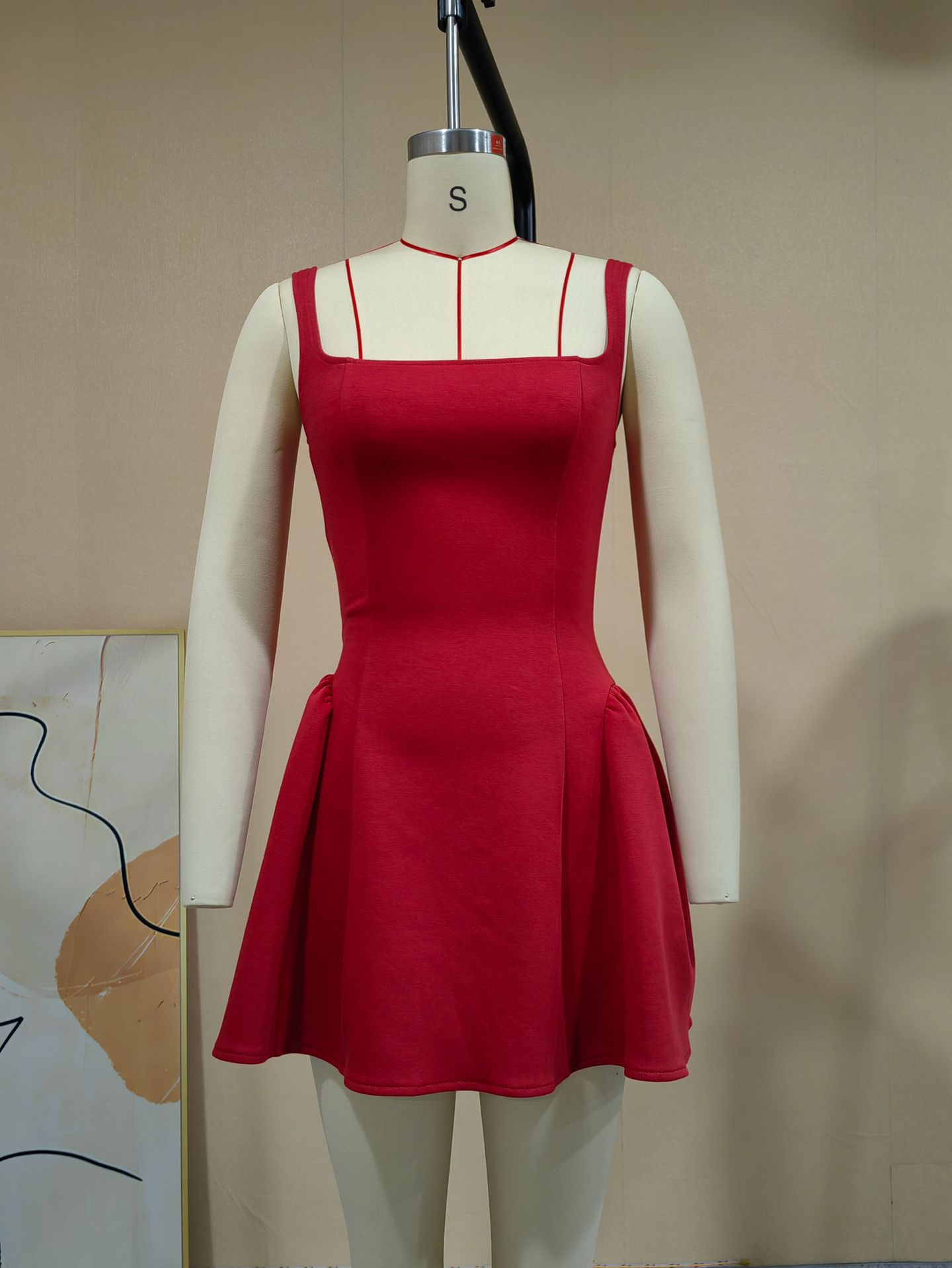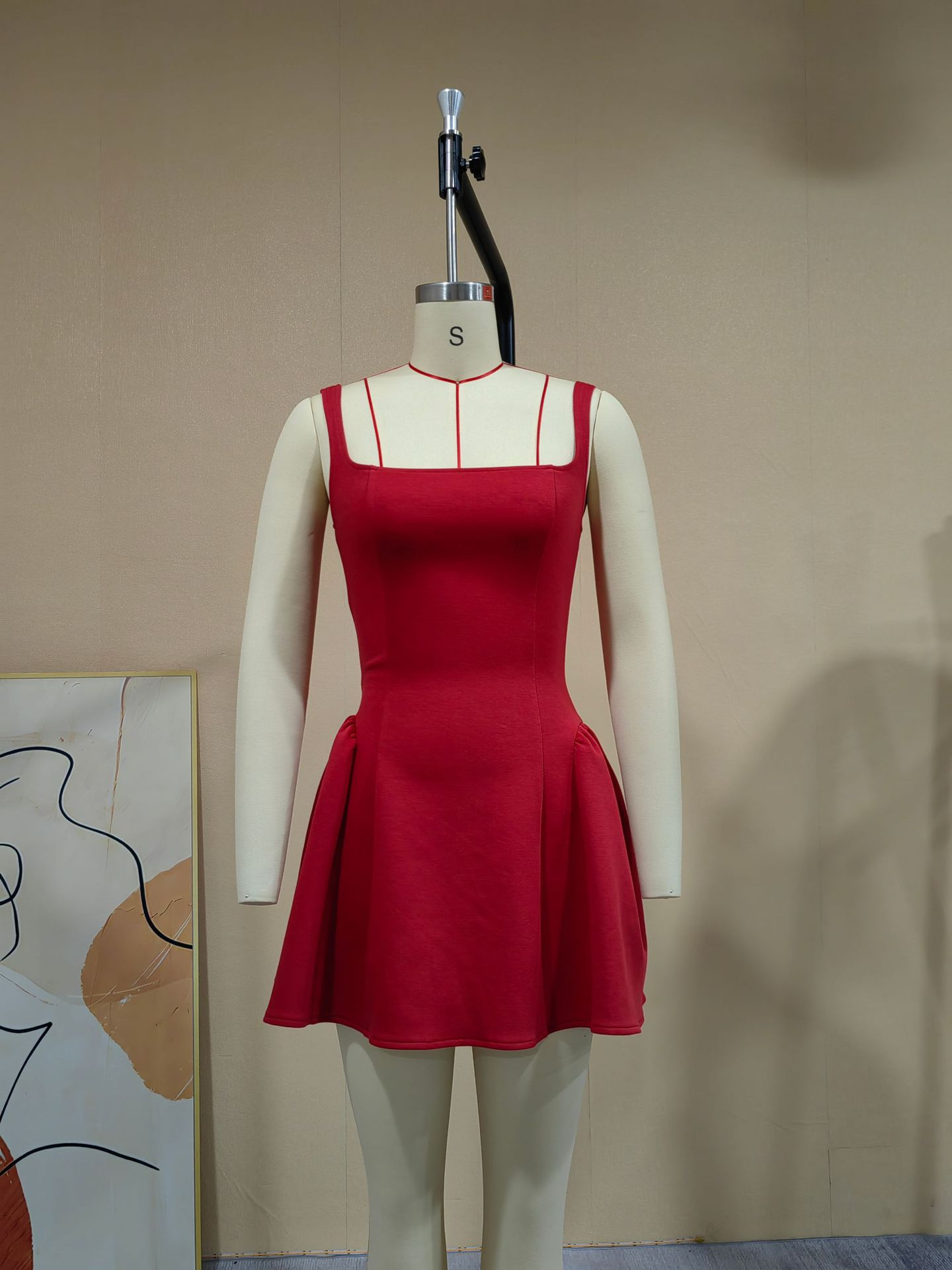 Turn up the charm with this slim-fit A-line mini dress, designed to highlight your shape with a sleek, flattering silhouette. The strapless square neckline adds a touch of modern elegance, making it perfect for warm weather and stylish summer outings.