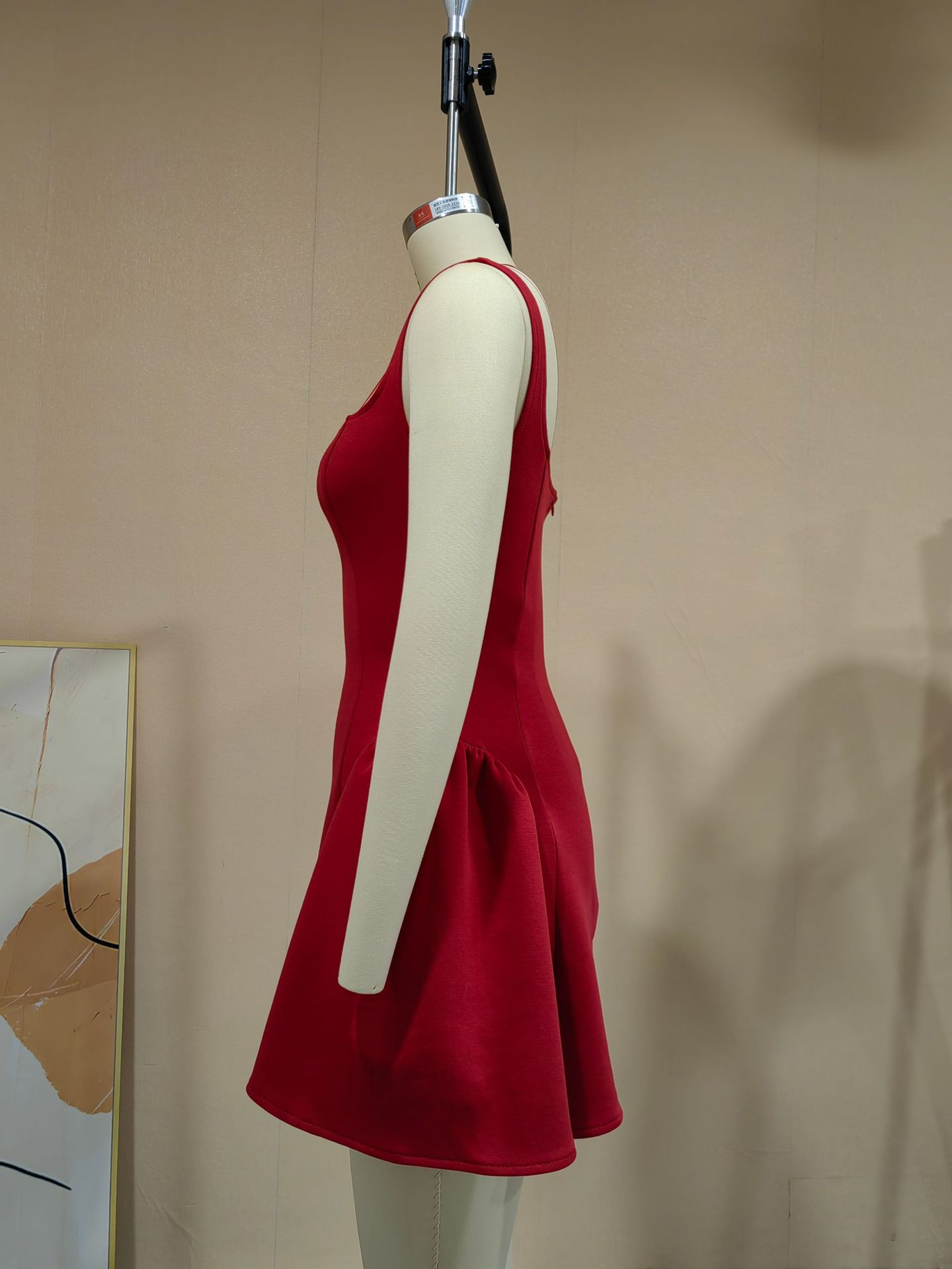 Crafted from a soft, stretchy polyester–spandex blend, this dress offers the ideal balance of comfort and durability. Its high-waist design enhances your figure, while the sleeveless cut keeps the look fresh, breathable, and effortlessly chic.