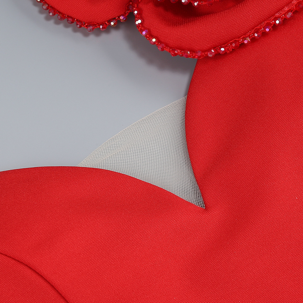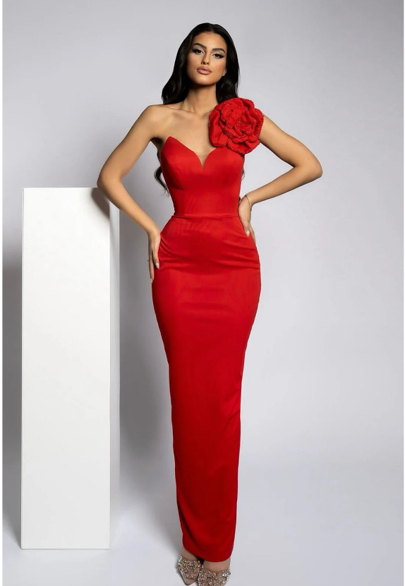 Adorned with 3D floral embellishments, this dress brings a unique, fashion-forward edge while maintaining a beautifully feminine charm. Its modern strapless design offers both comfort and sophistication, making it an effortless choice for day-to-night styling.