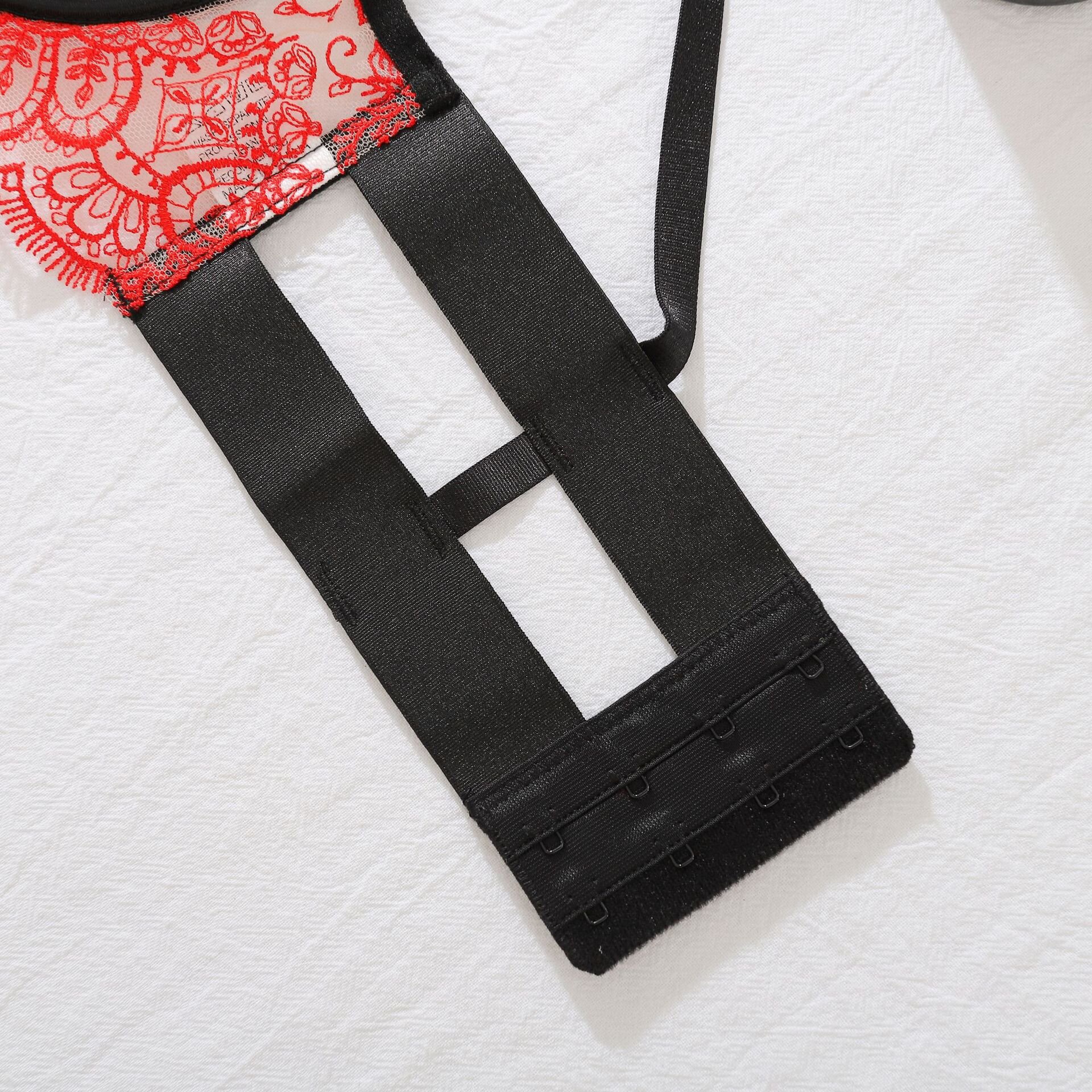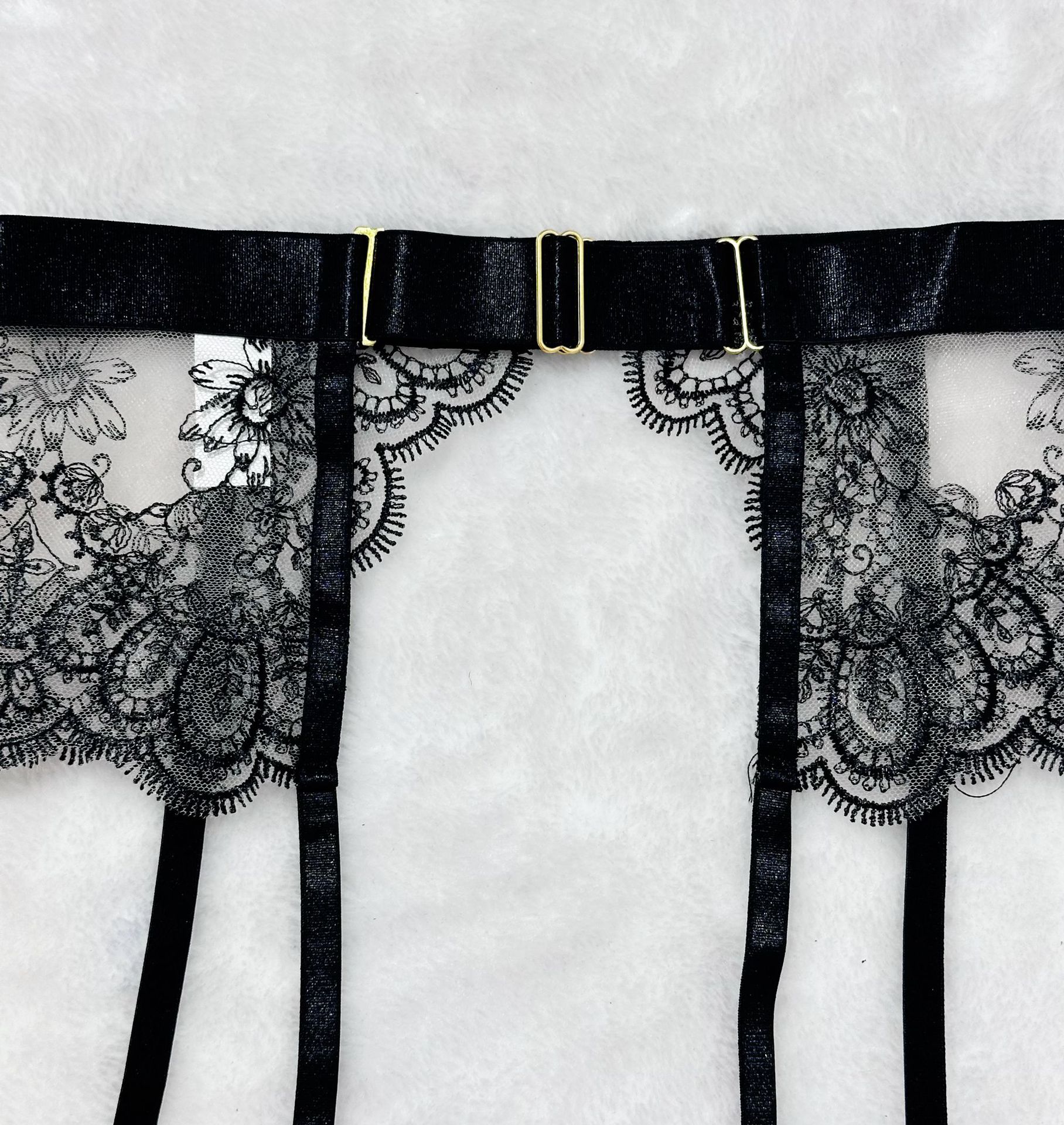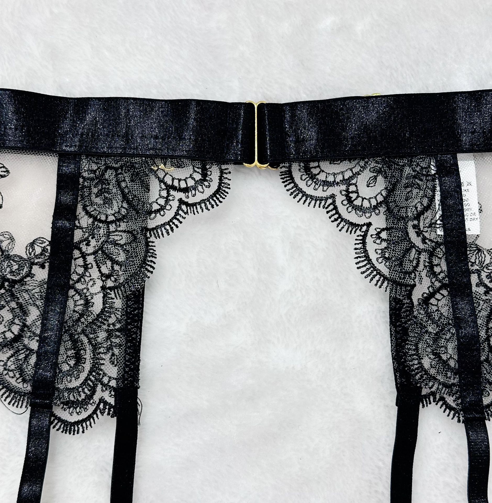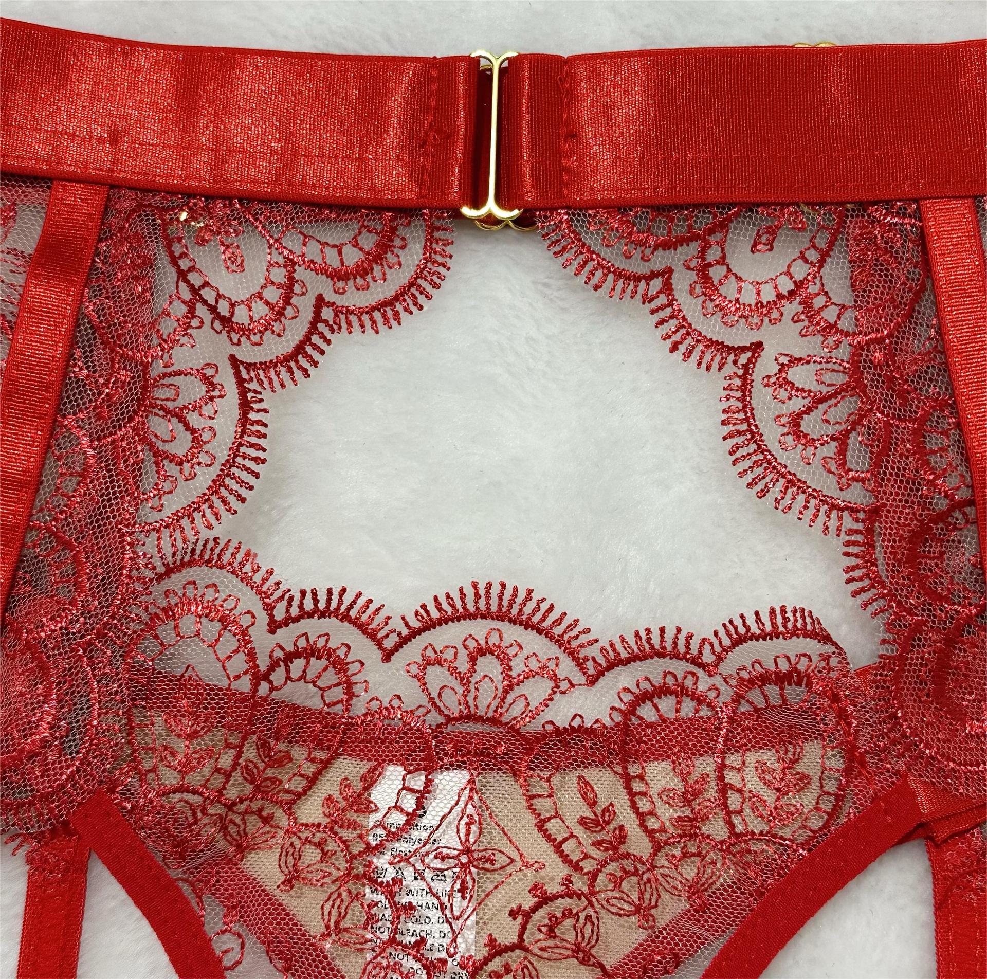 Transparent Heavy Embroidery Eyelash Lace Shaping Sexy Four-Piece Set for Women