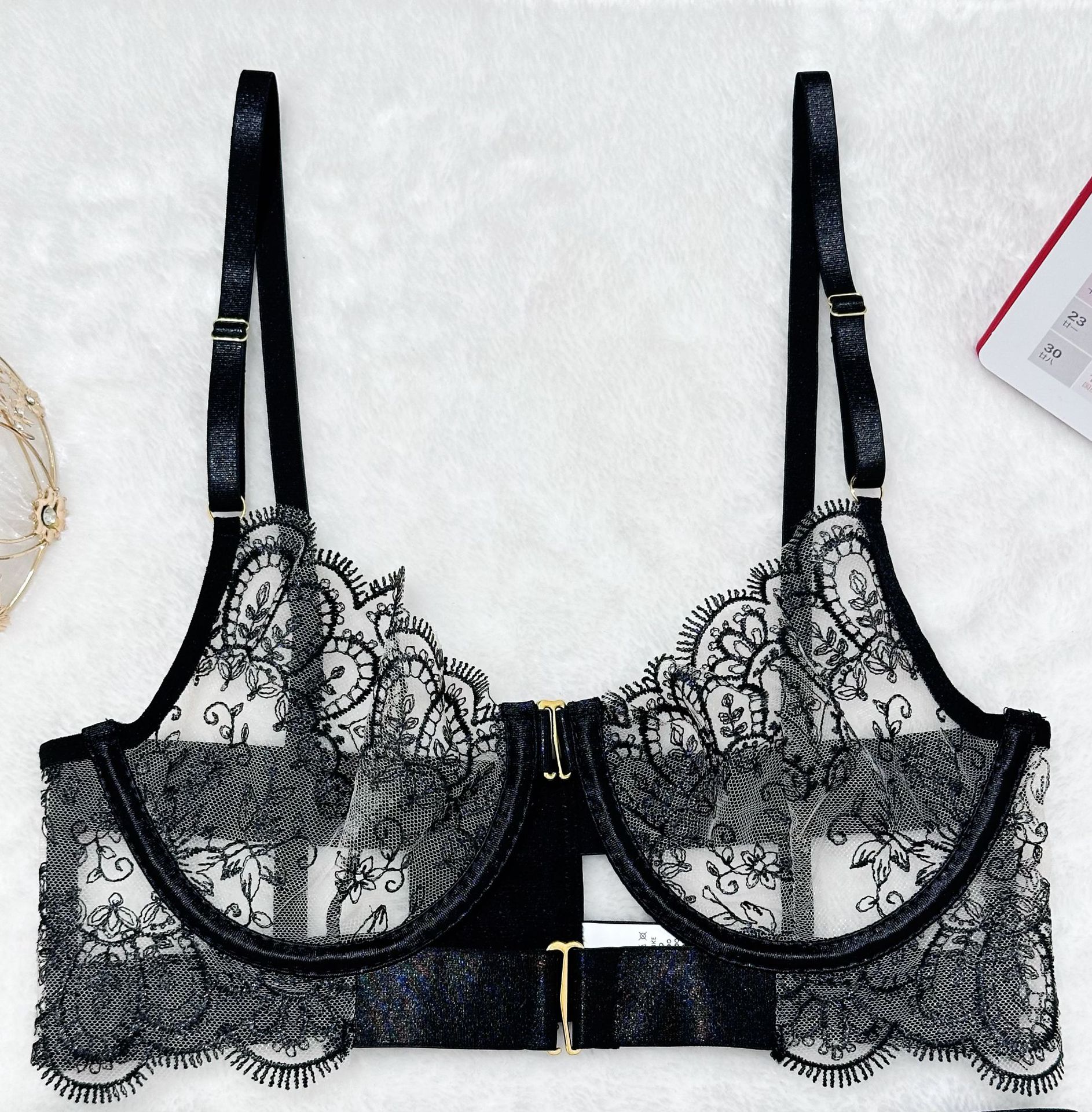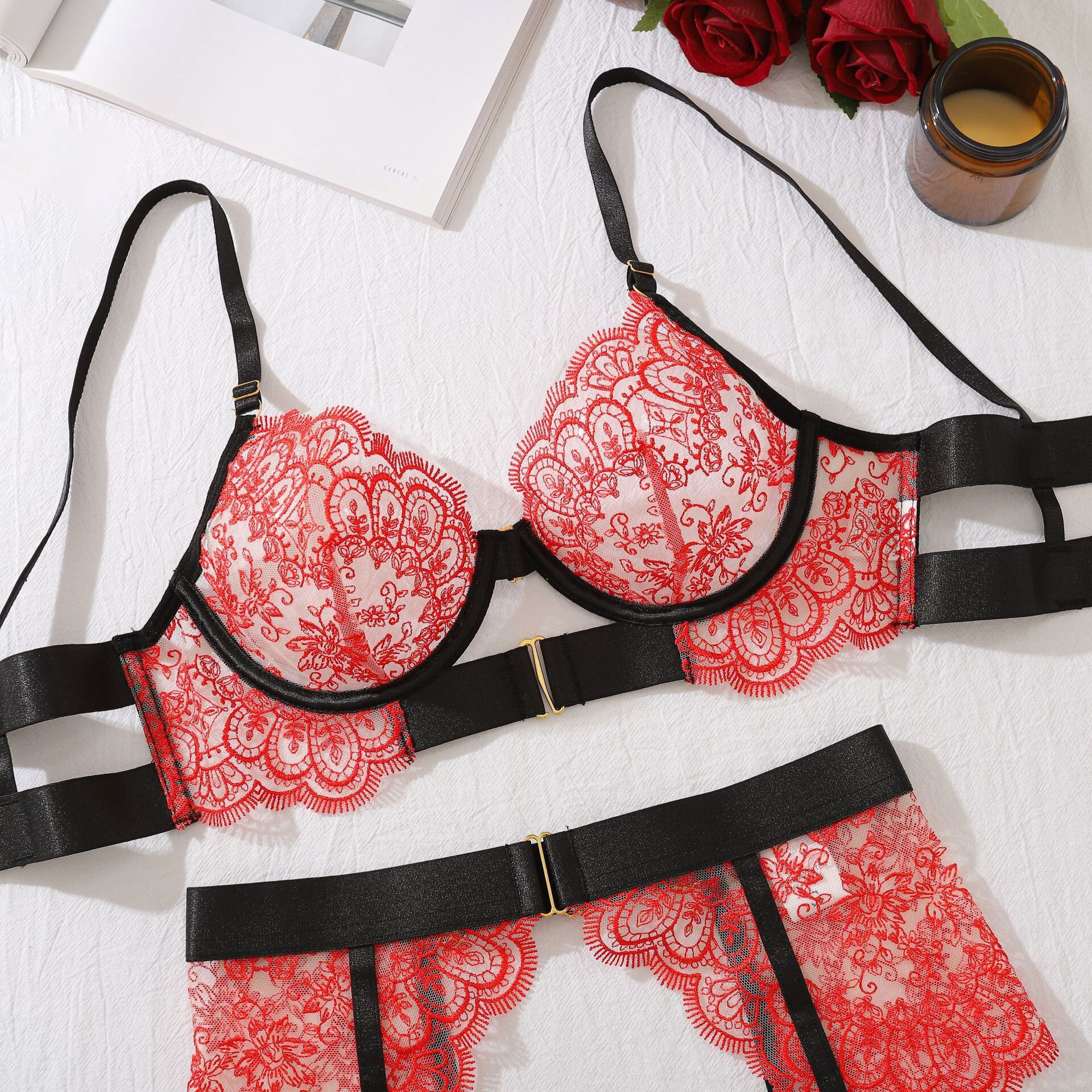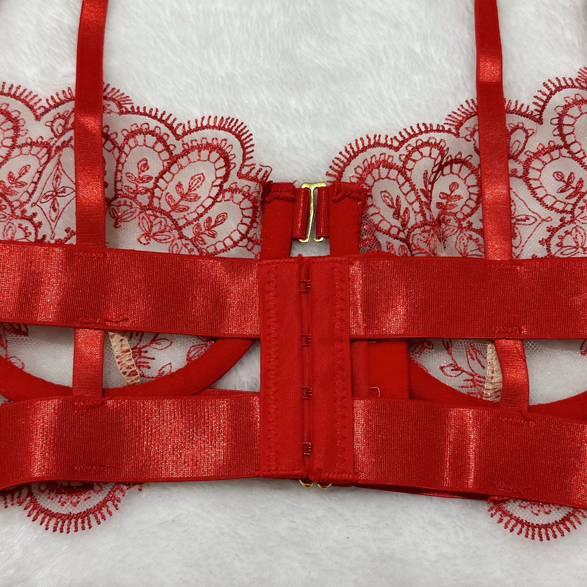 Transparent Heavy Embroidery Eyelash Lace Shaping Sexy Four-Piece Set for Women