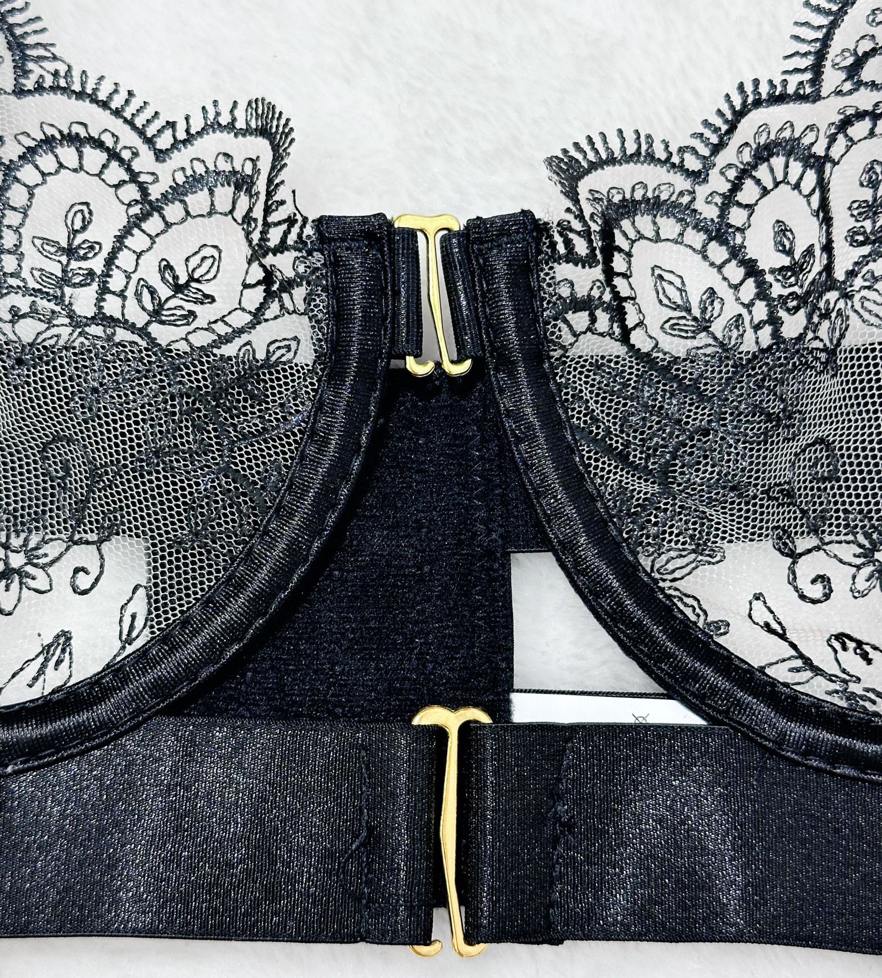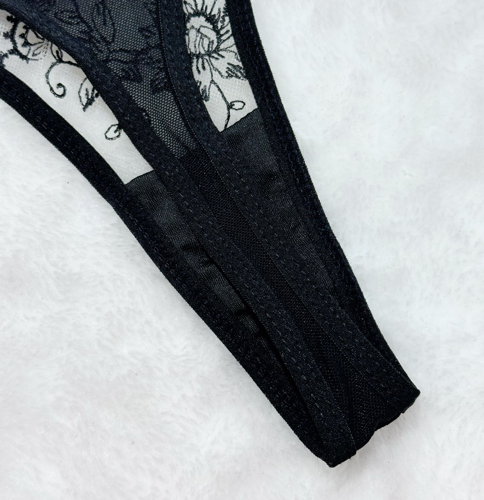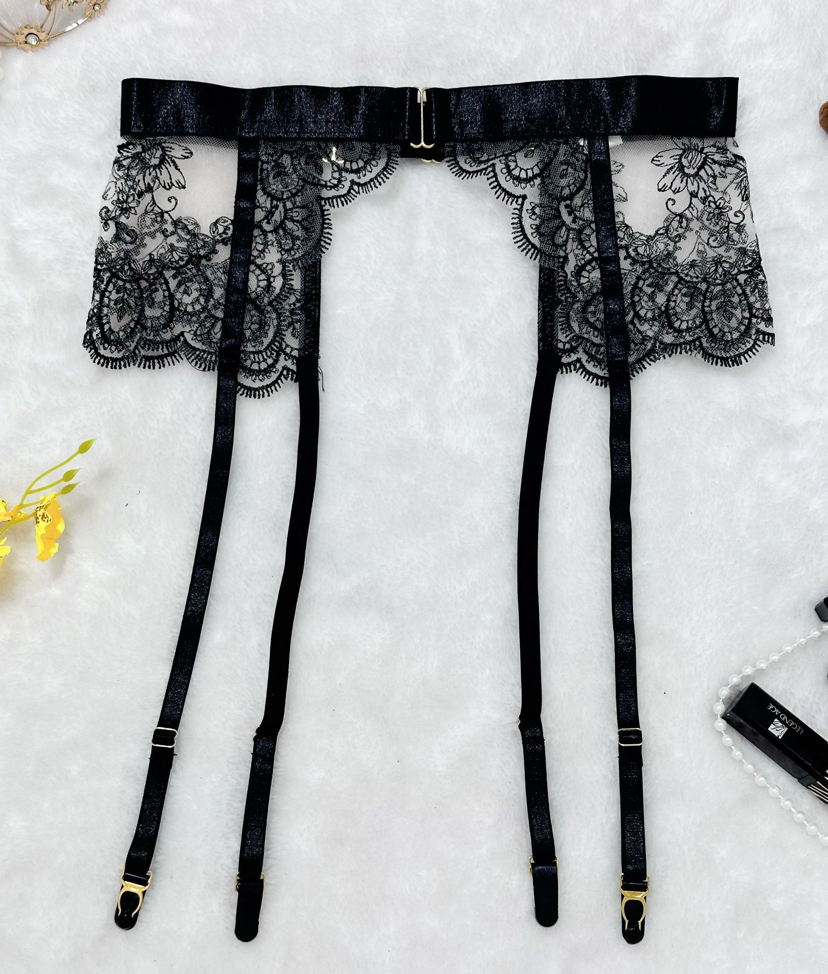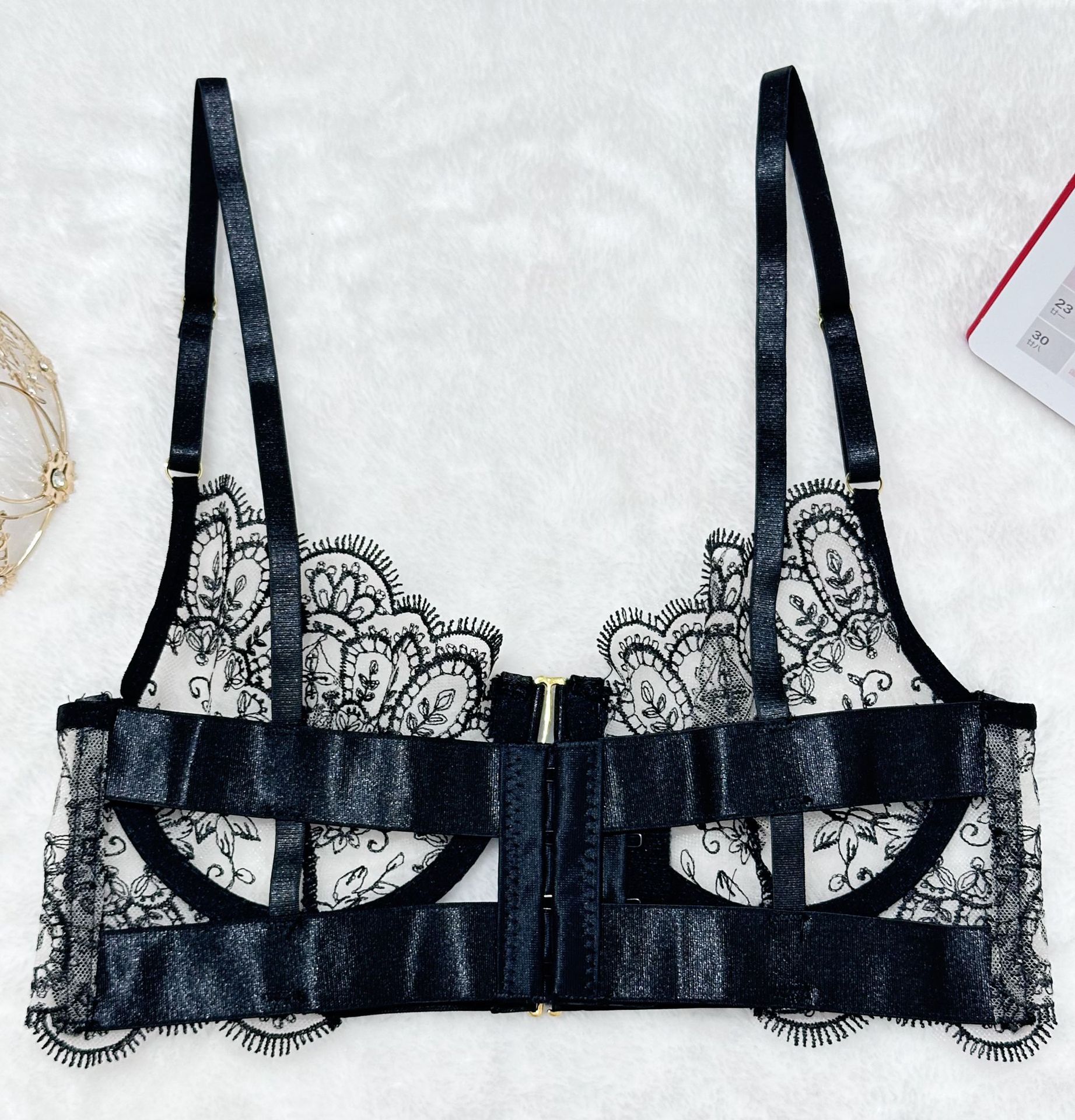 Transparent Heavy Embroidery Eyelash Lace Shaping Sexy Four-Piece Set for Women